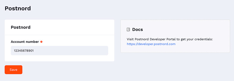 2. Ange följande uppgifter från din transportör. Till höger finner du dokumentation till respektive transportör för att hitta dina API-uppgifter.