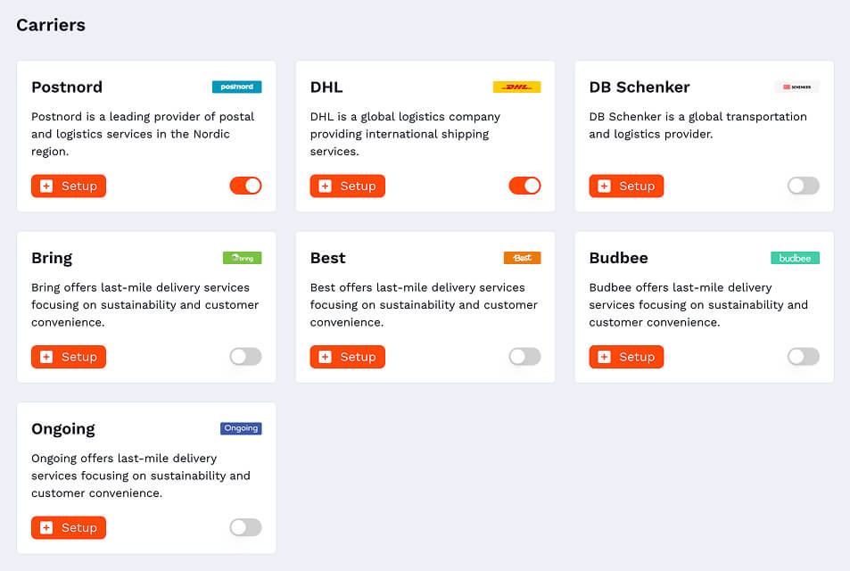 OBS! Säkerställ att era transportörer är påslagna i listningen av era transportörer
