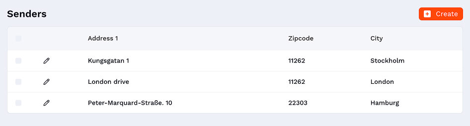 Dina avsändare är den plats där transportören ska hämta upp dina leveranser. Du kan ha fler upphämtningsställen som du kan matcha upp i systemet.